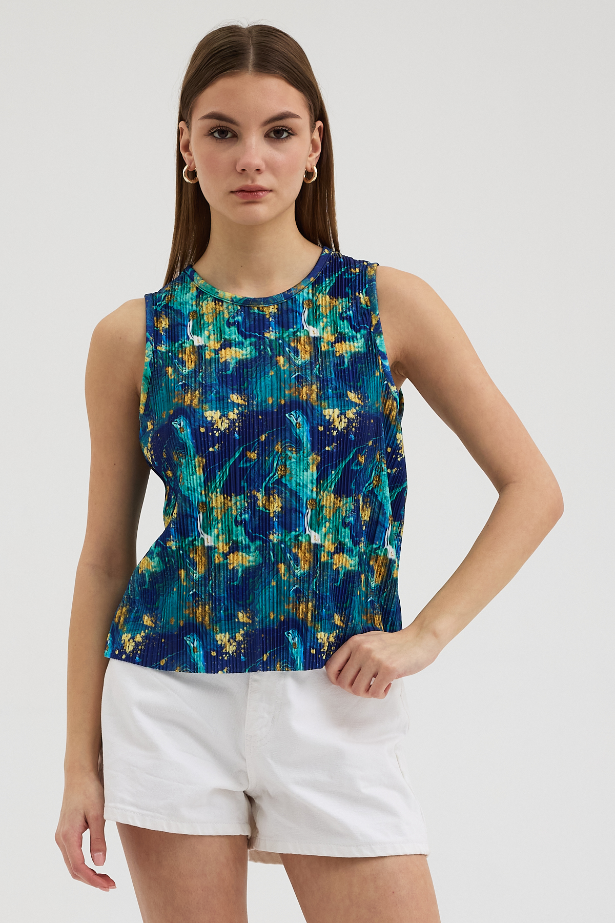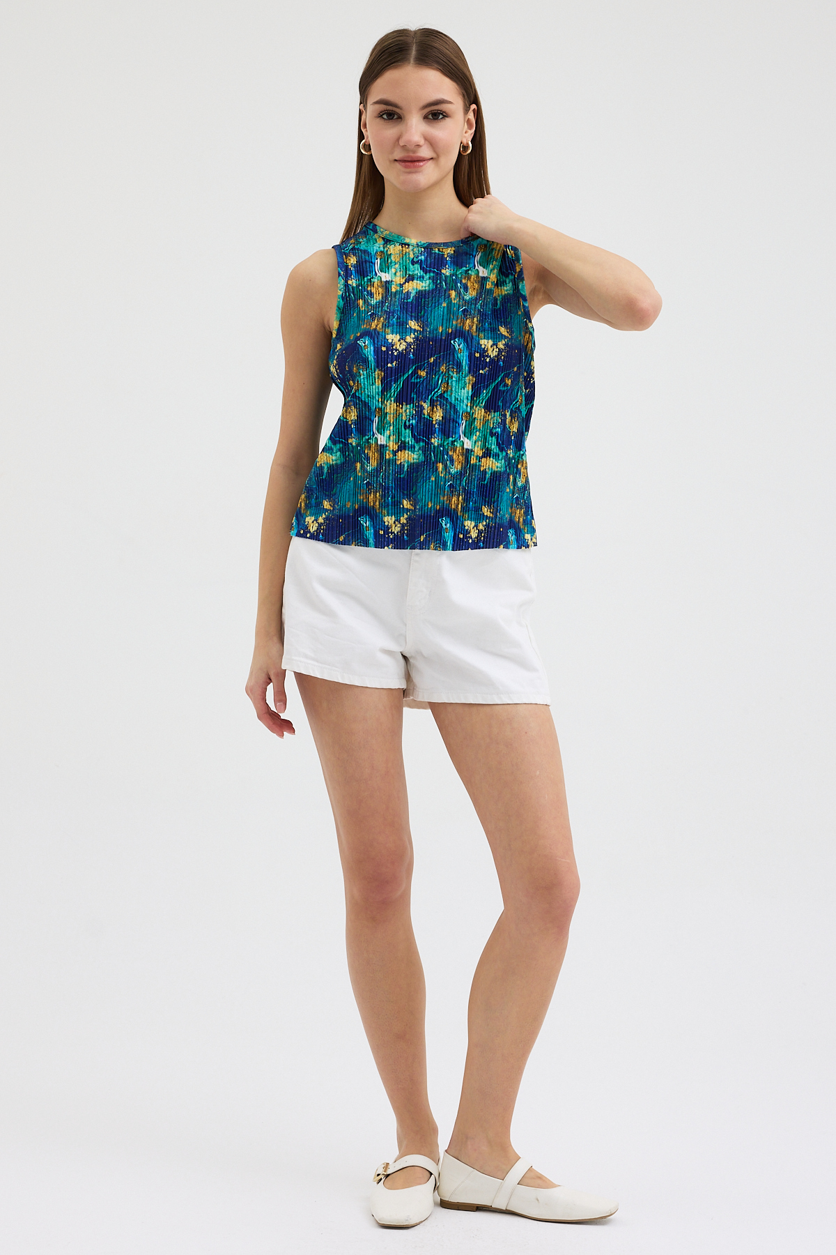 Ebru Sanatı Esintili Pliseli Bluz