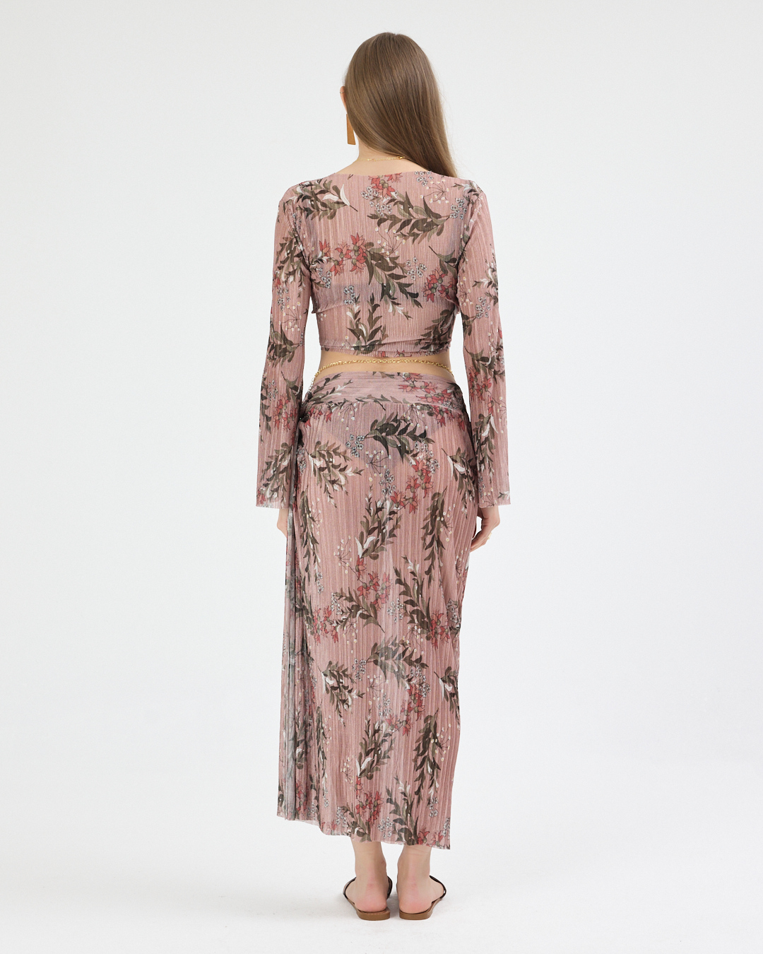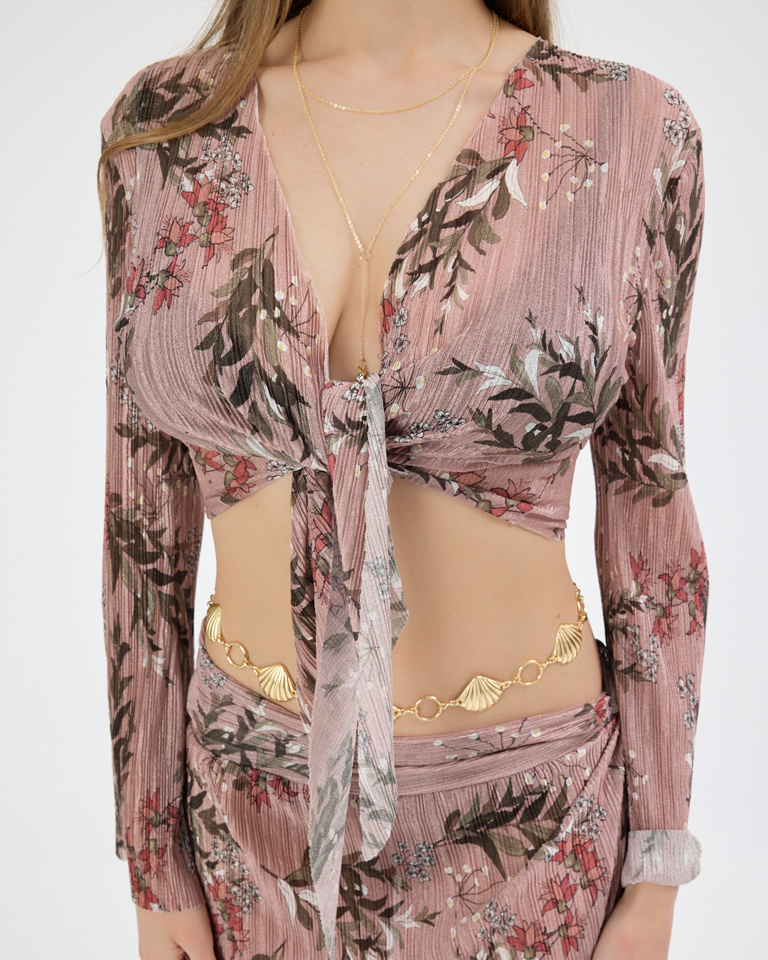 Gül Kurusu Pliseli Çiçekli Pareo Takım