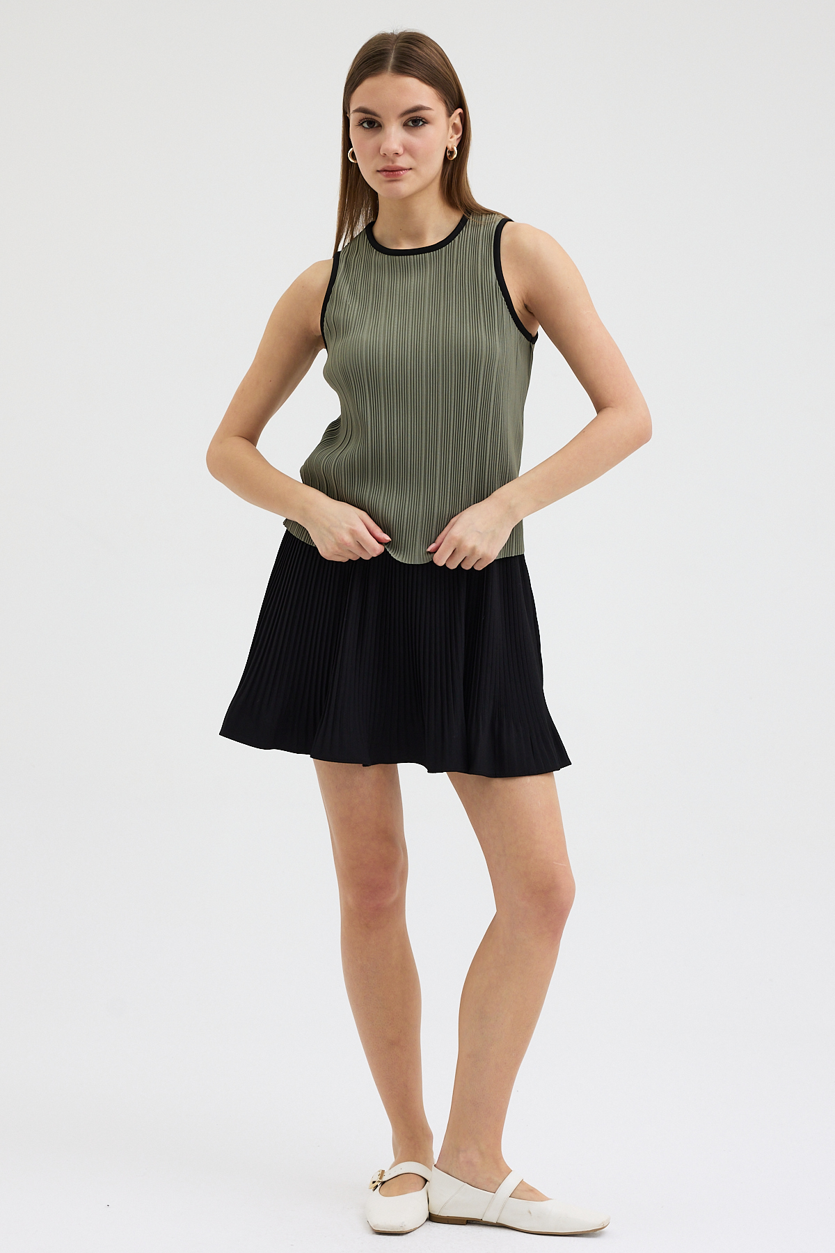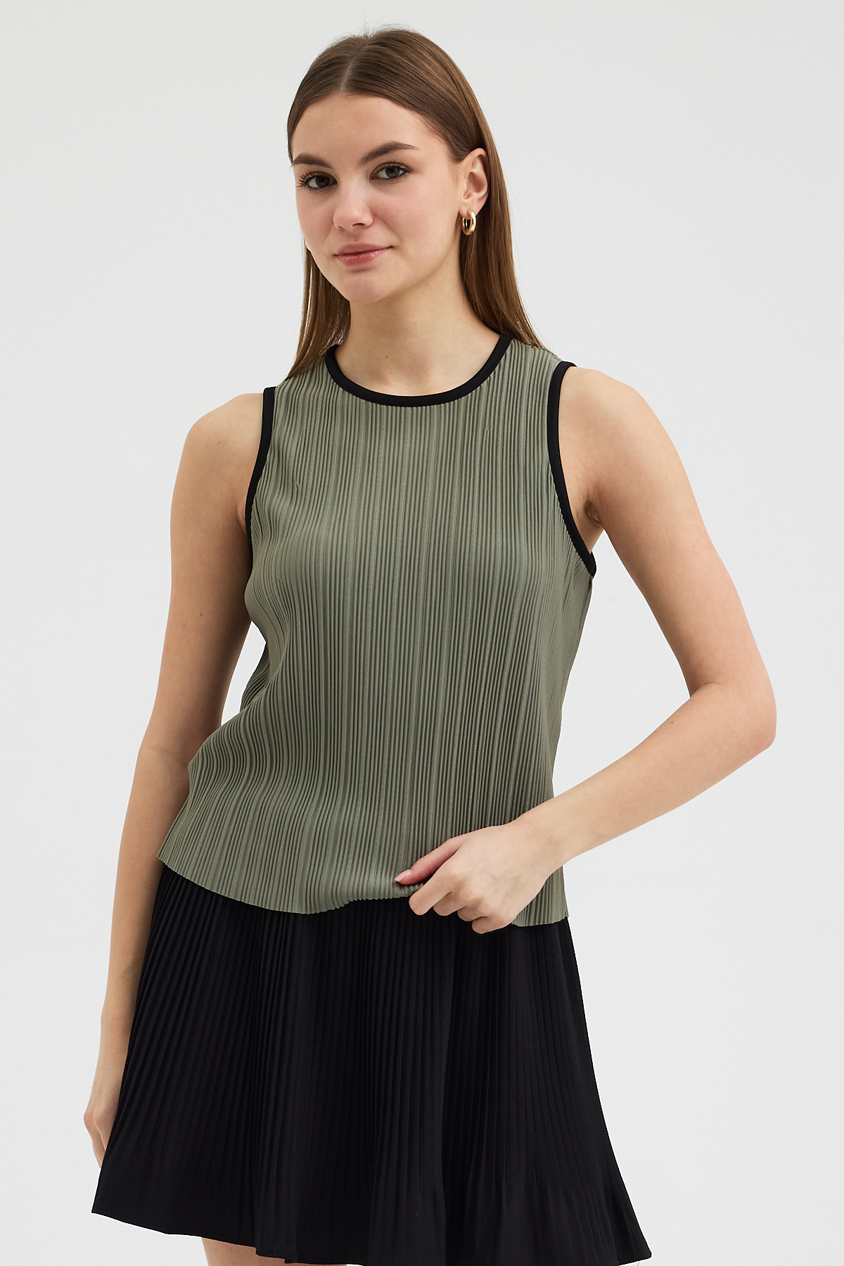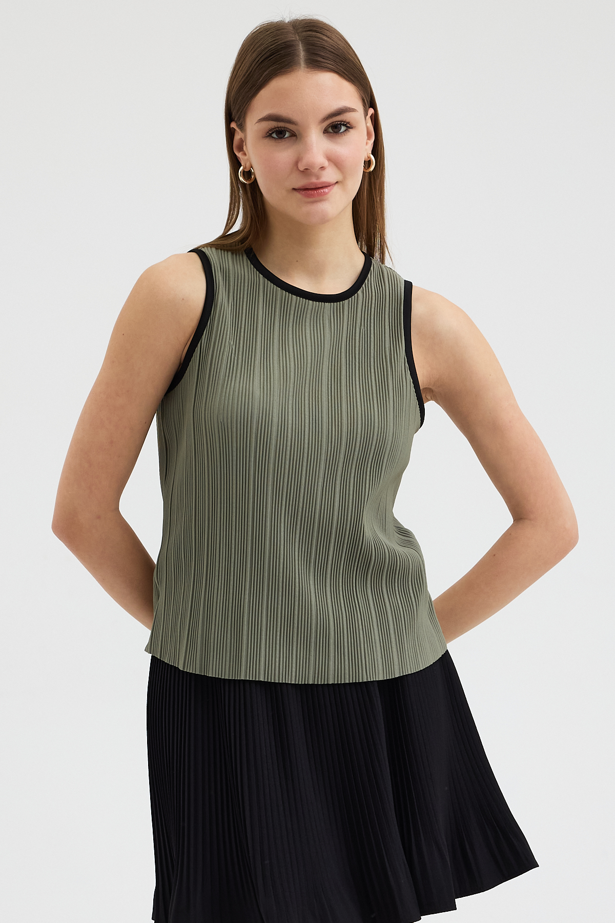 Haki Pliseli Bluz