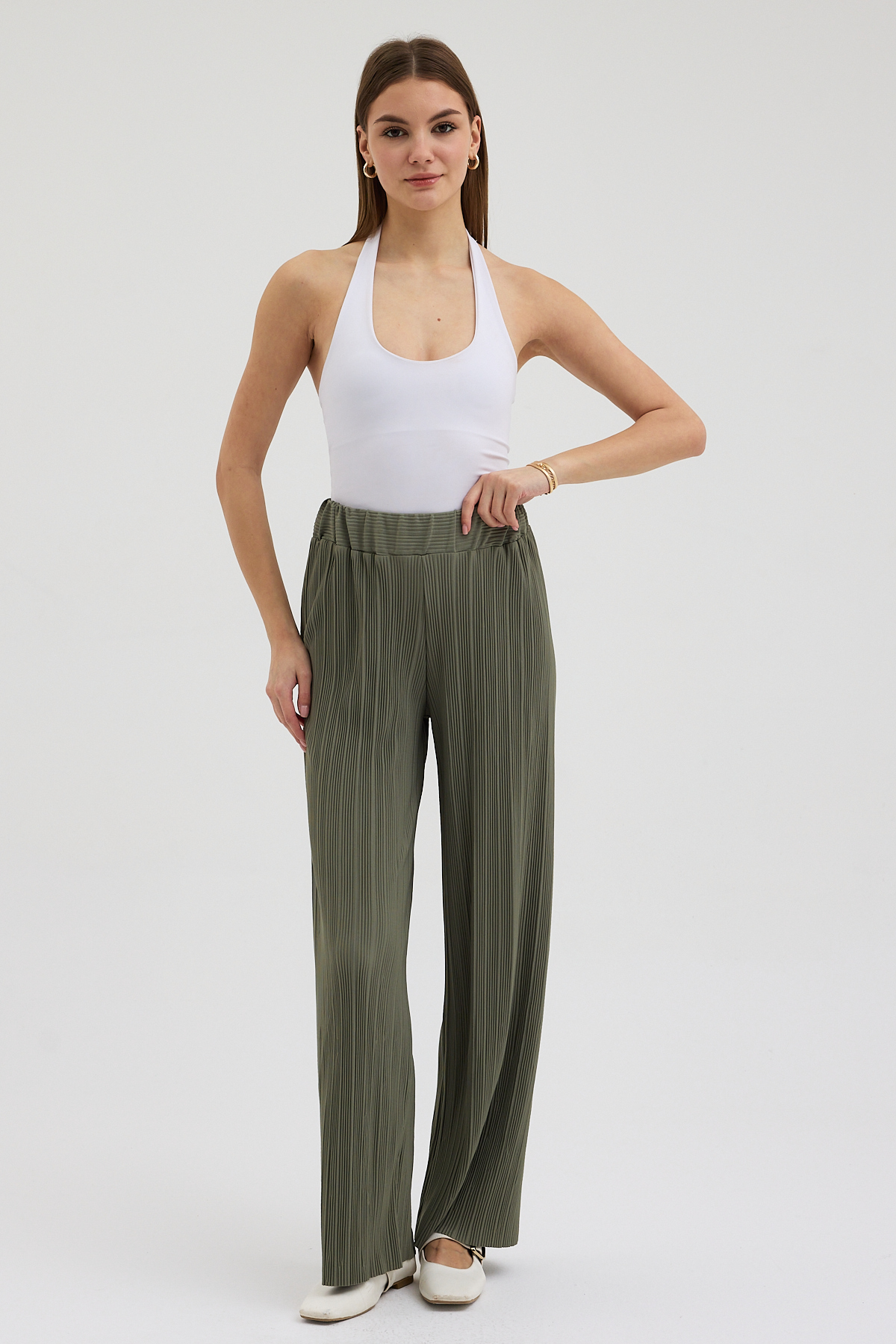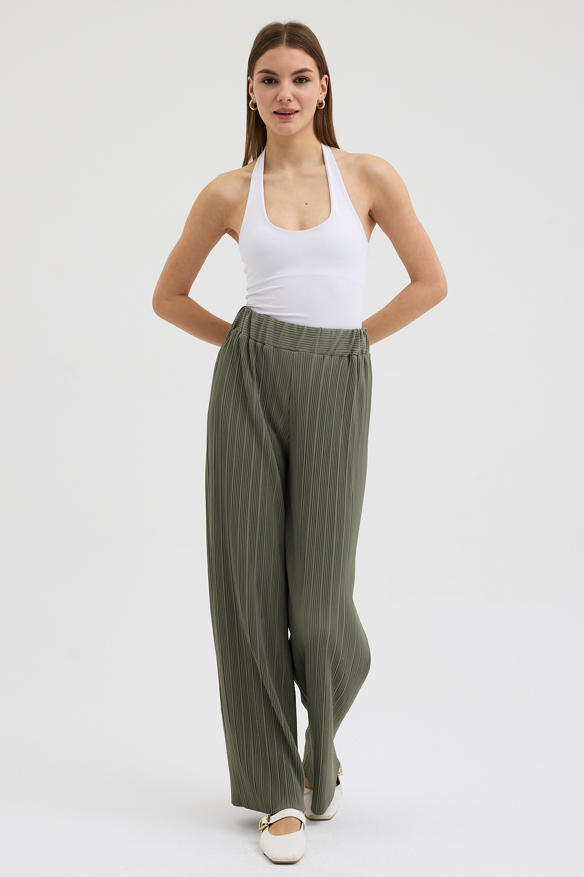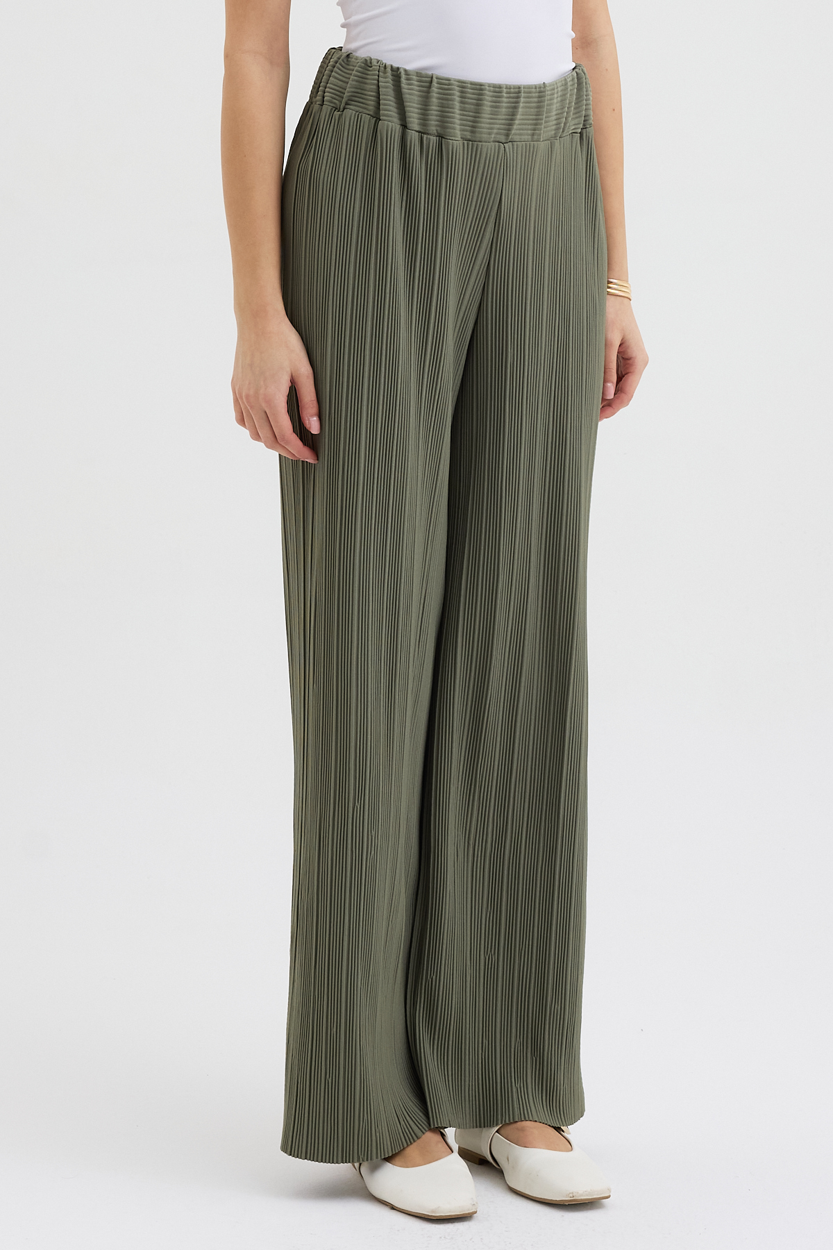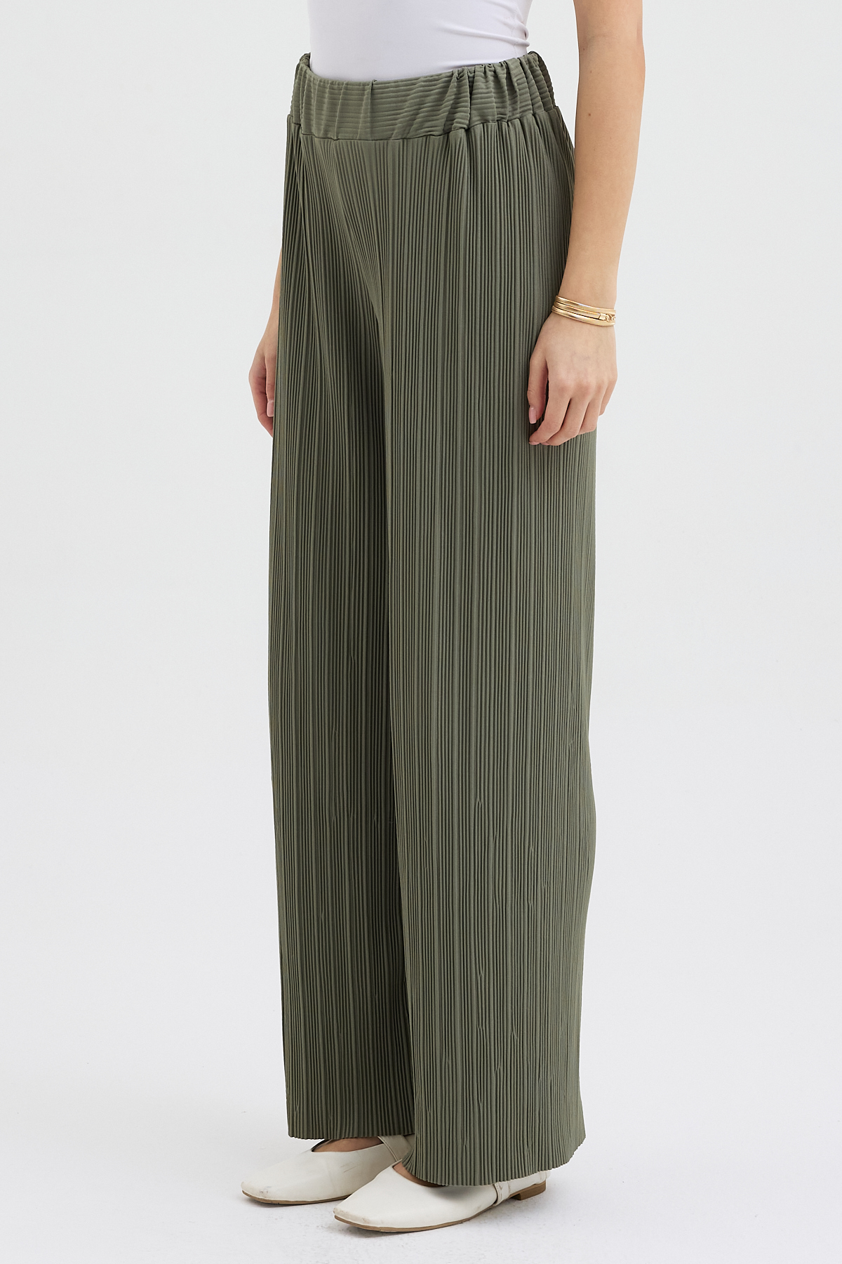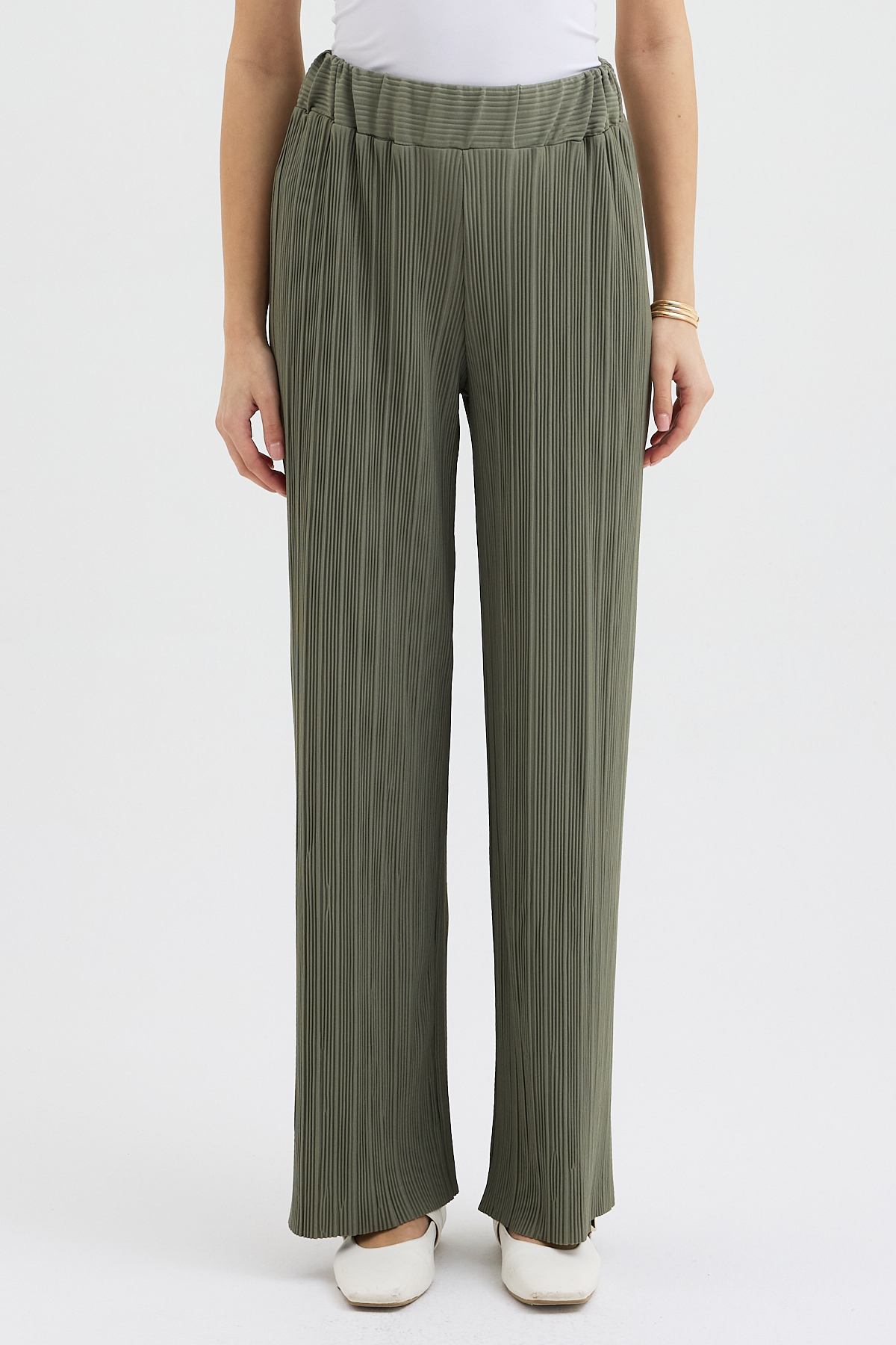 Haki Pliseli Pantolon