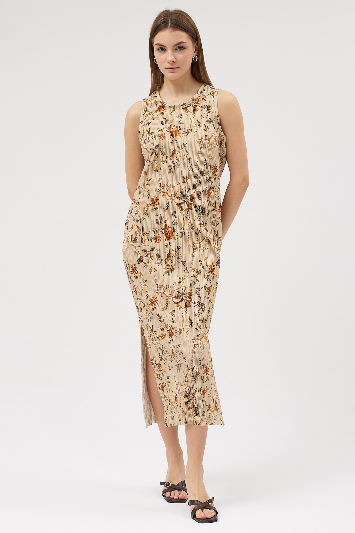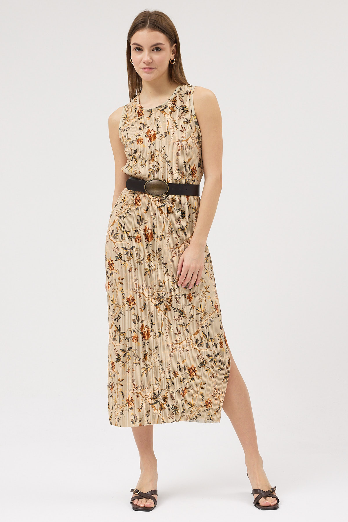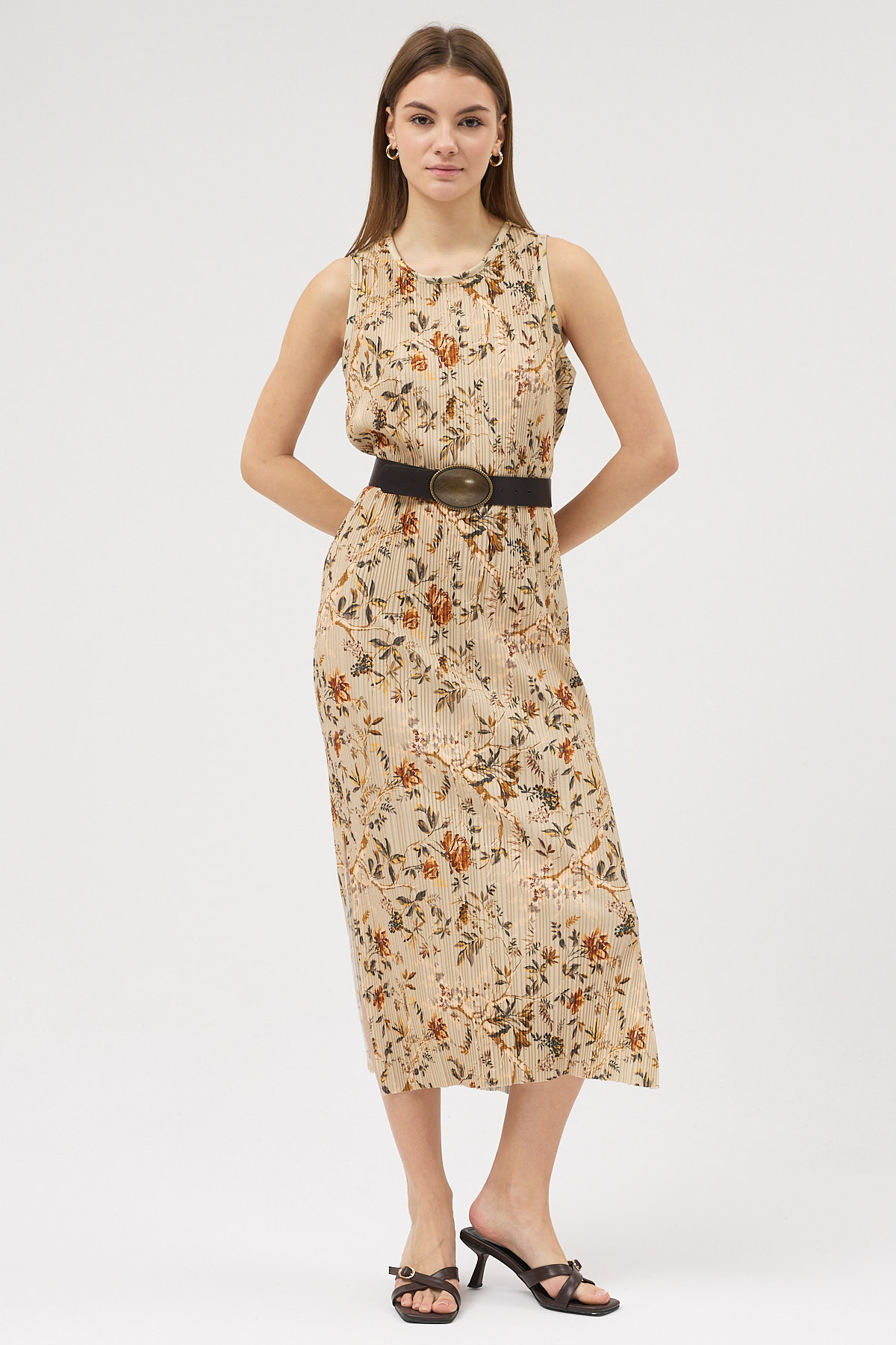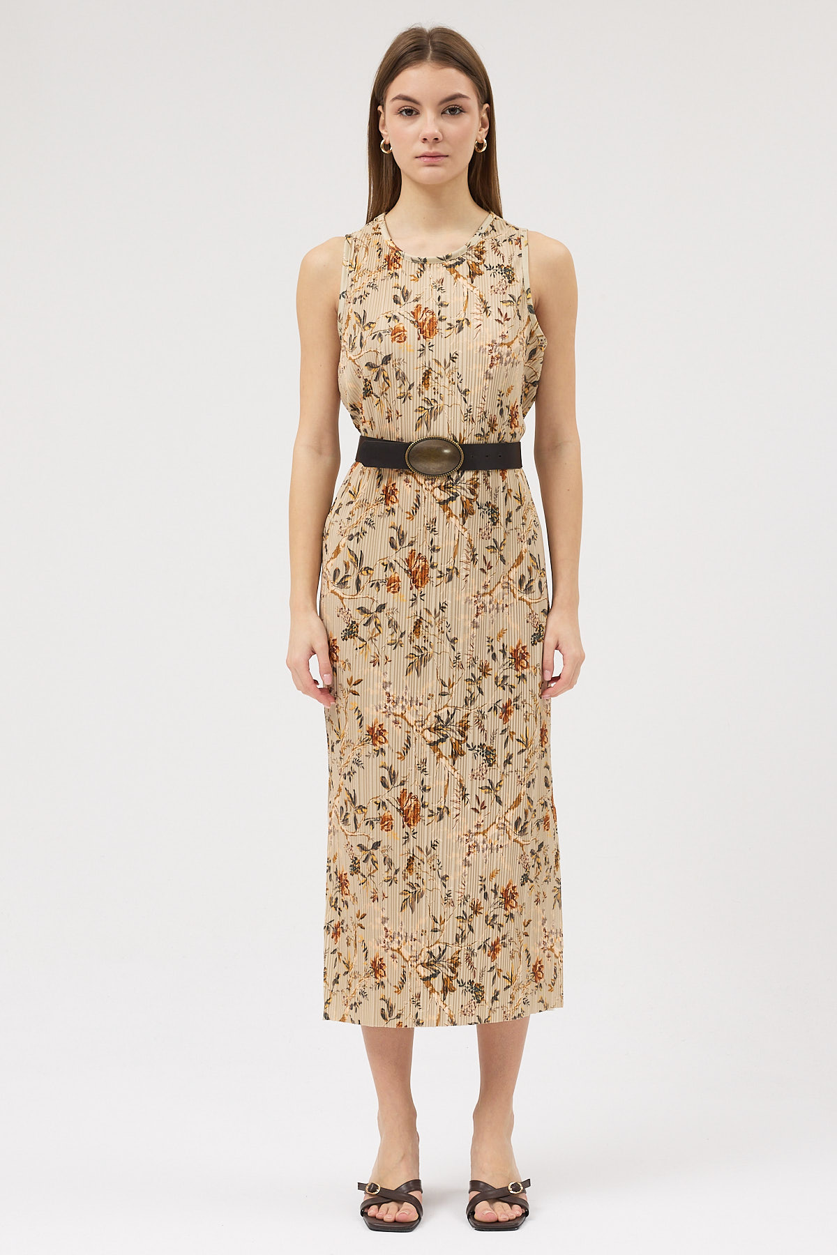 Sütlü Kahve Pliseli Elbise