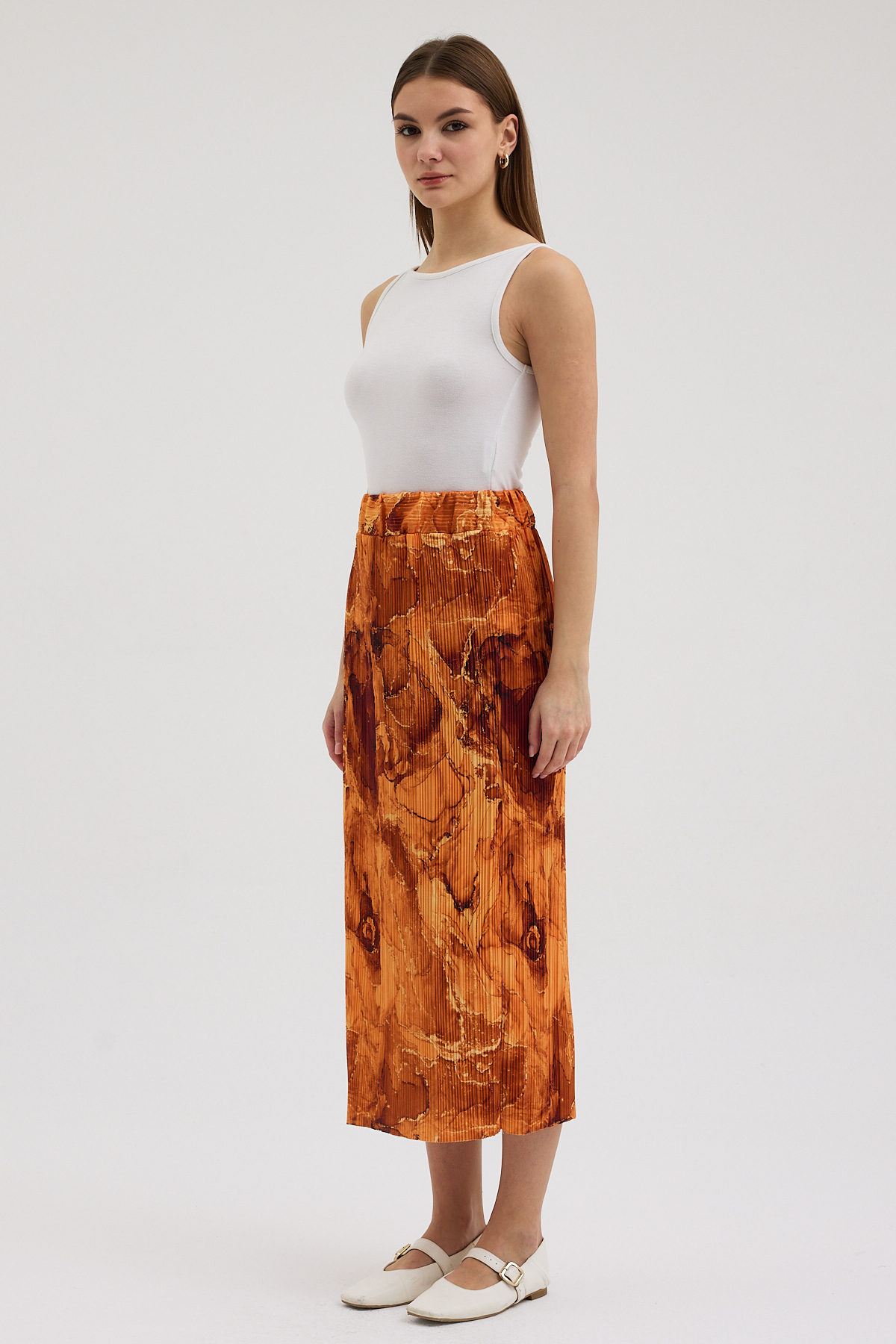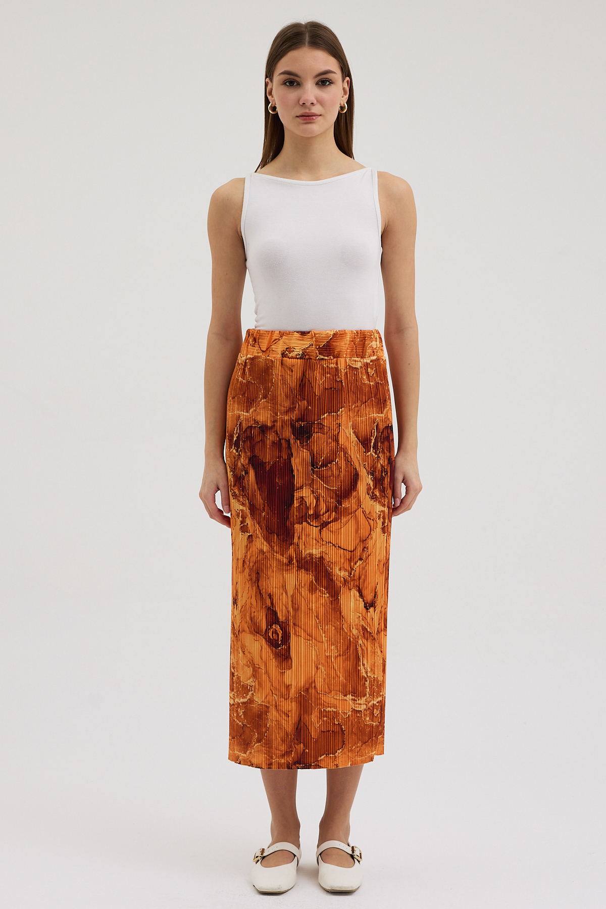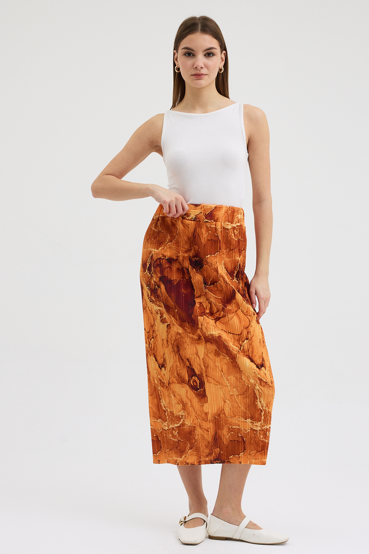 – Turuncu mermer deseniyle dikkat çekici bir görünüm sunar.